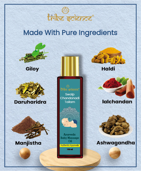TheTribe Science prepares its original “SWALPCHANDANADI TAILAM by the method mentioned in ancient Ayurveda books formulation made with finest &rarest ingredients including bharangi, adusa, kantakari, bala, giloy, svet chandan, agar, talishpatra, nakhi, manjishta, padmakh, motha, kachur, laksha, haldi, daruhaldi, lalchandan in a cold pressed sesame oil base.